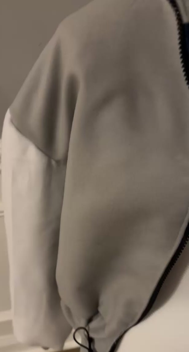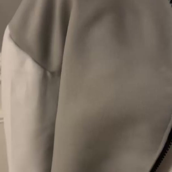 This jacket is a special edition version of our Classic Steel Grey Bomber, featuring solid grey trimming with a waist drawstring for a customizable fit. The cuffs maintain the signature grey-and-white striped detail for a classic finish.